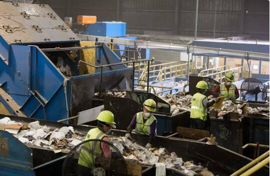 ▲美国马里兰州埃尔克里奇,工人在废物回收厂内分类垃圾。